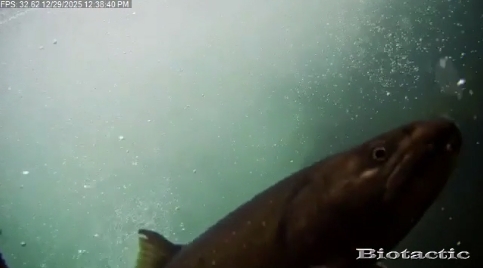 Trail Bridge Reservoir Tailrace, Mackenzie River, Oregon Bull Trout passing the camera in early December