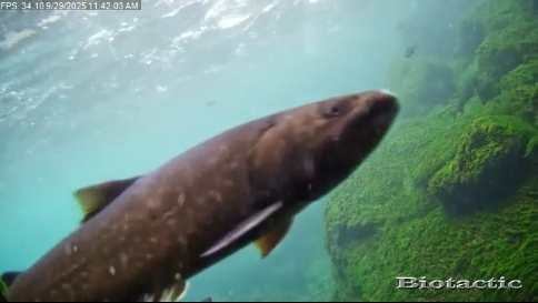 Trail Bridge Reservoir Tailrace, Mackenzie River, Oregon Great underside footage of a Bull Trout swimming up past the camera