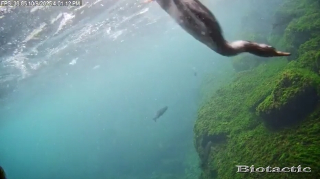 Trail Bridge Reservoir Tailrace, Mackenzie River, Oregon A Merganser diving past the camera in the late afternoon