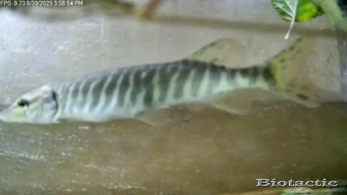 Upper Whitehorse Fishway, Whitehorse, Yukon, Canada A juvenile Northern Pike seen navigating the fishway
