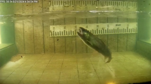 Upper Whitehorse Fishway, Whitehorse, Yukon, Canada Beautiful Chinook Salmon making it’s way upstream through the fishway