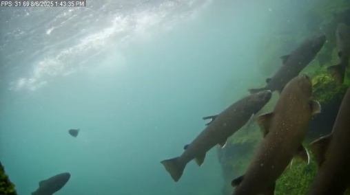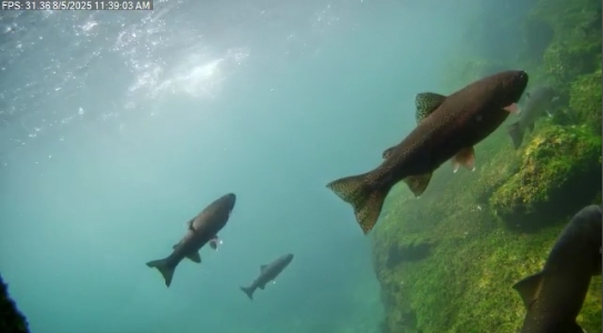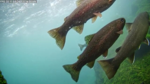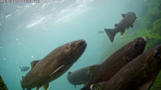 Trail Bridge Reservoir Tailrace, Mackenzie River, Oregon Close-ups of Bull Trout and Rainbow Trout schooling in front of the camera